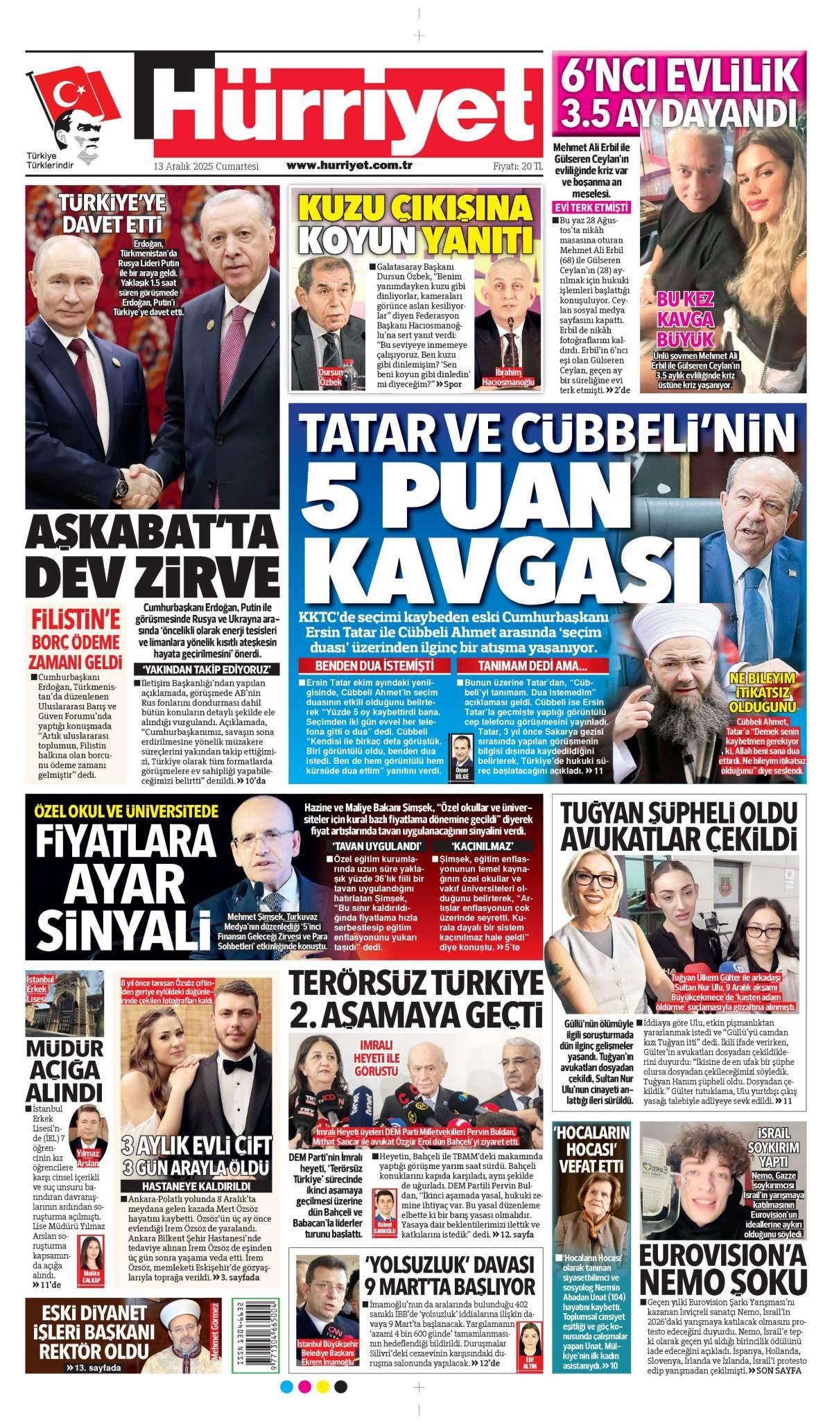 Hürriyet Gazetesi 14 Aralık 2025 Günü Manşeti