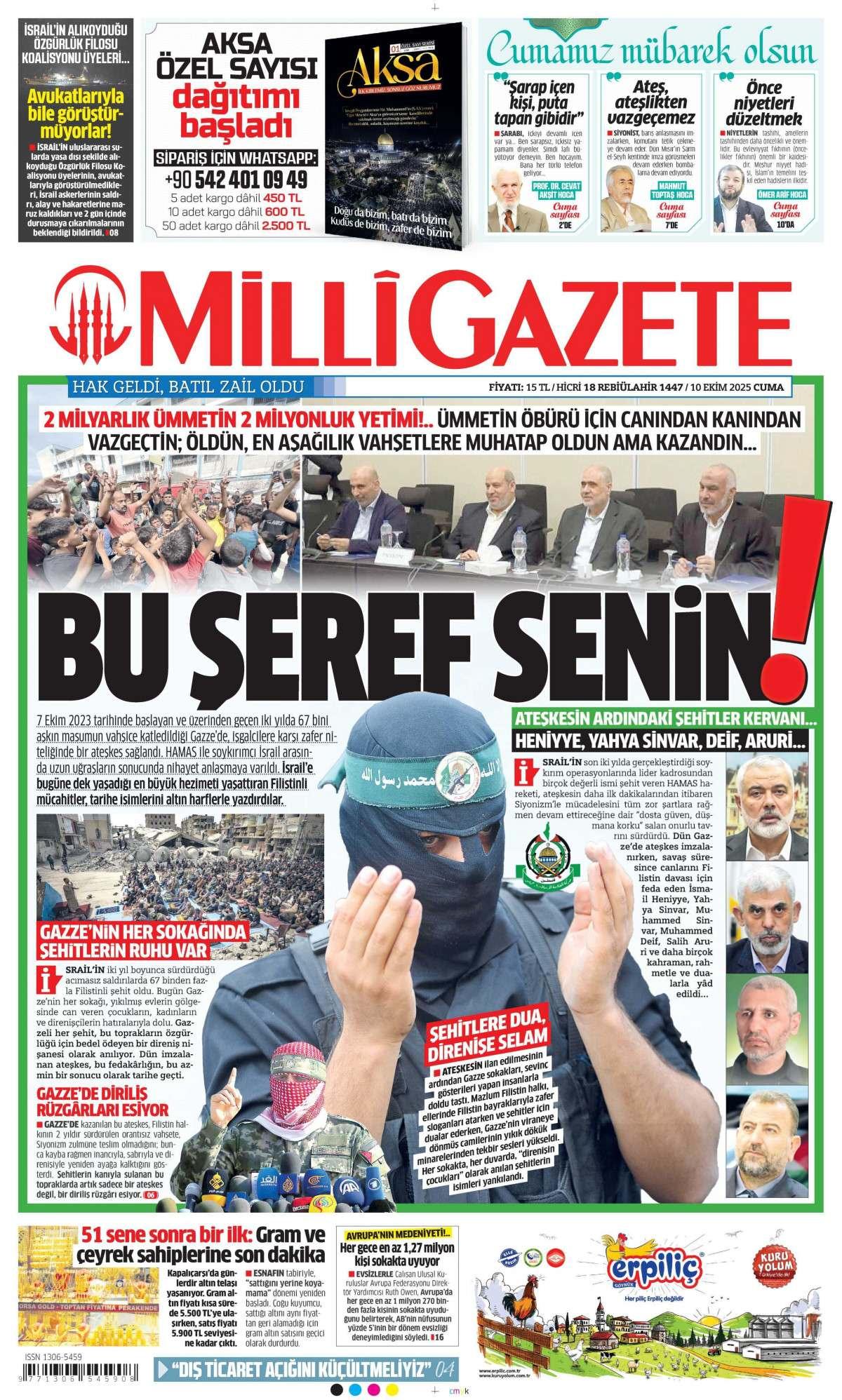 Milli Gazetesi 10 Ekim 2025 Günü Manşeti