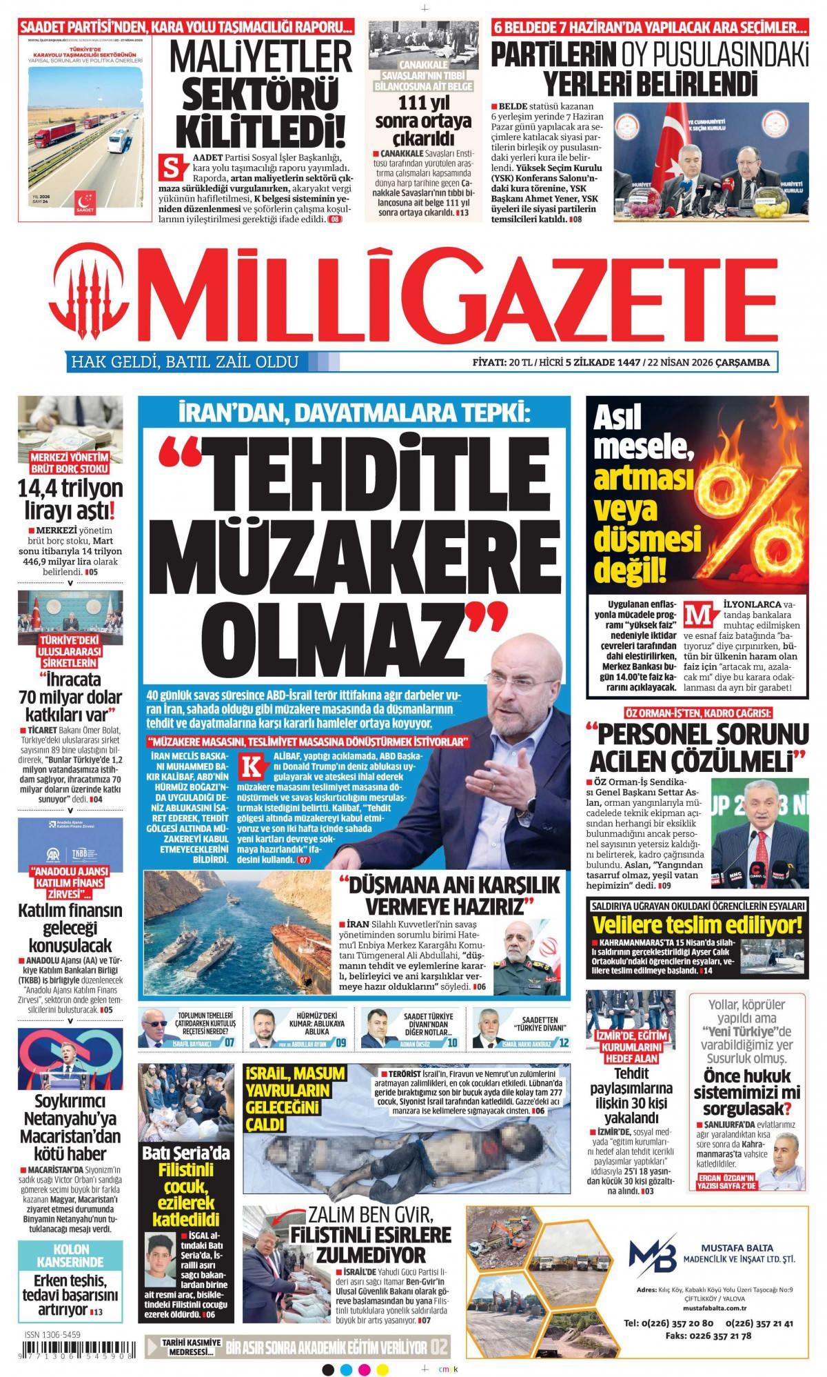 Milli Gazetesi 23 Nisan 2026 Günü Manşeti