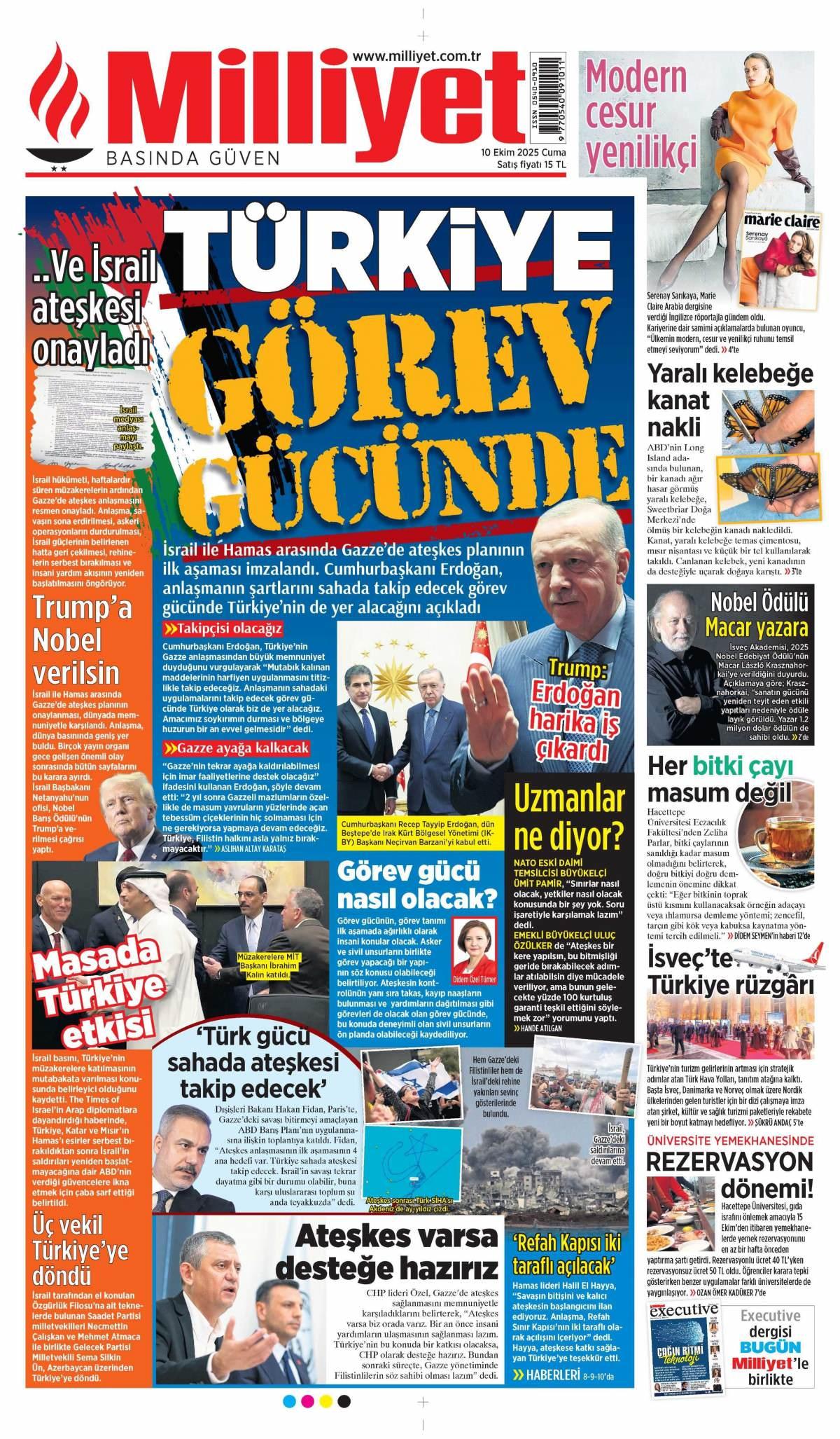 Milliyet Gazetesi 10 Ekim 2025 Günü Manşeti