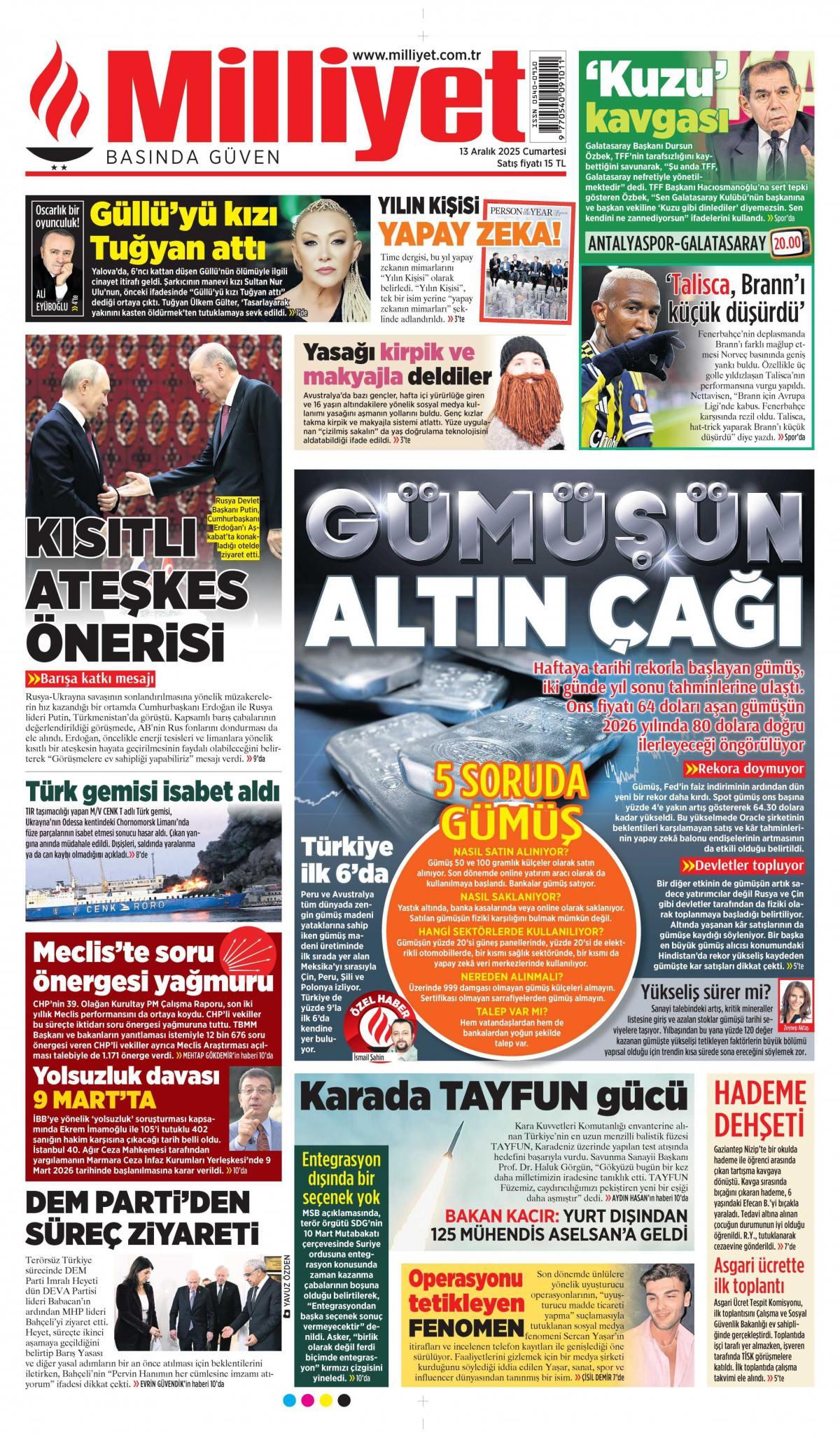 Milliyet Gazetesi 14 Aralık 2025 Günü Manşeti