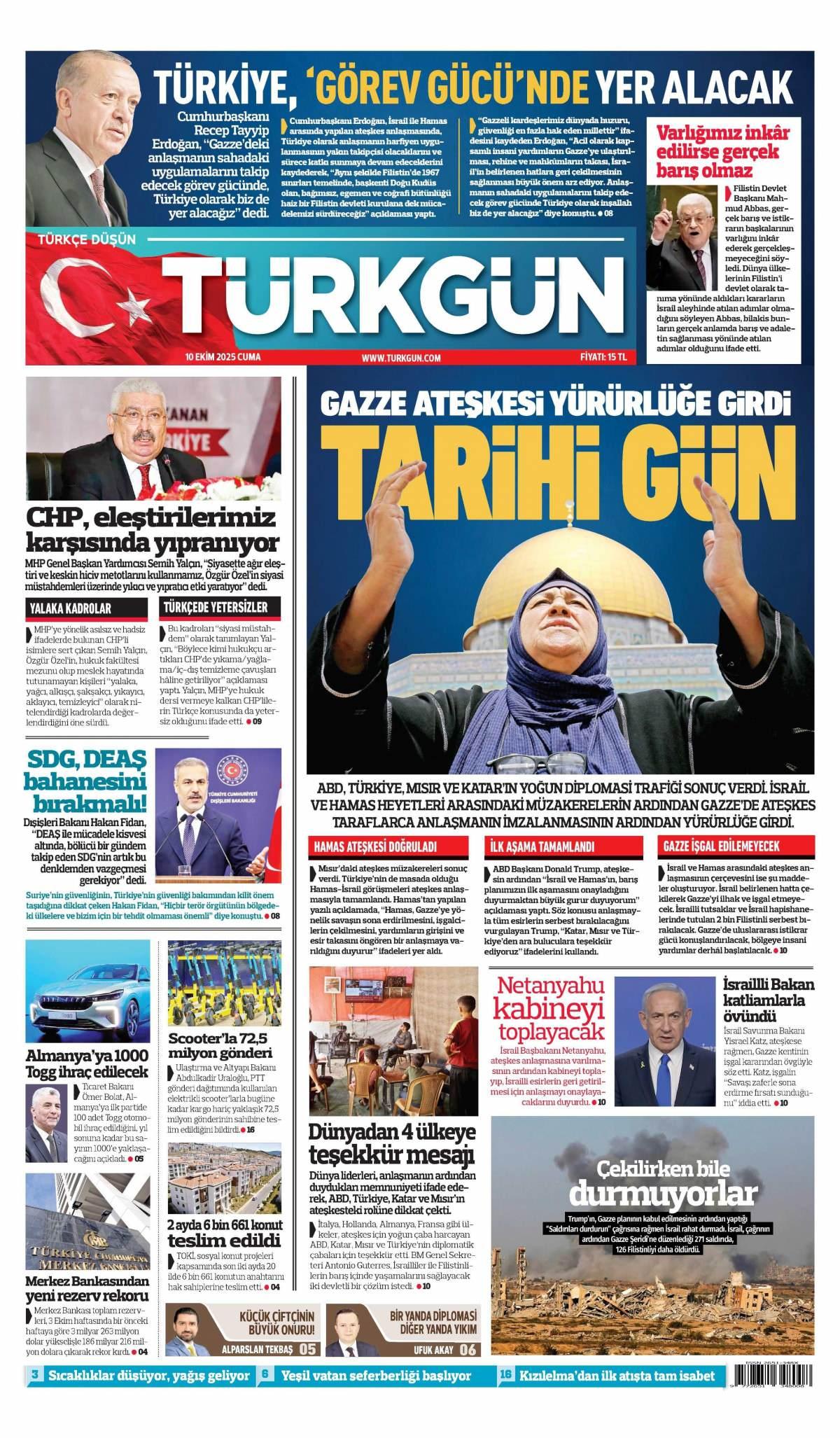 Türkgün Gazetesi 10 Ekim 2025 Günü Manşeti