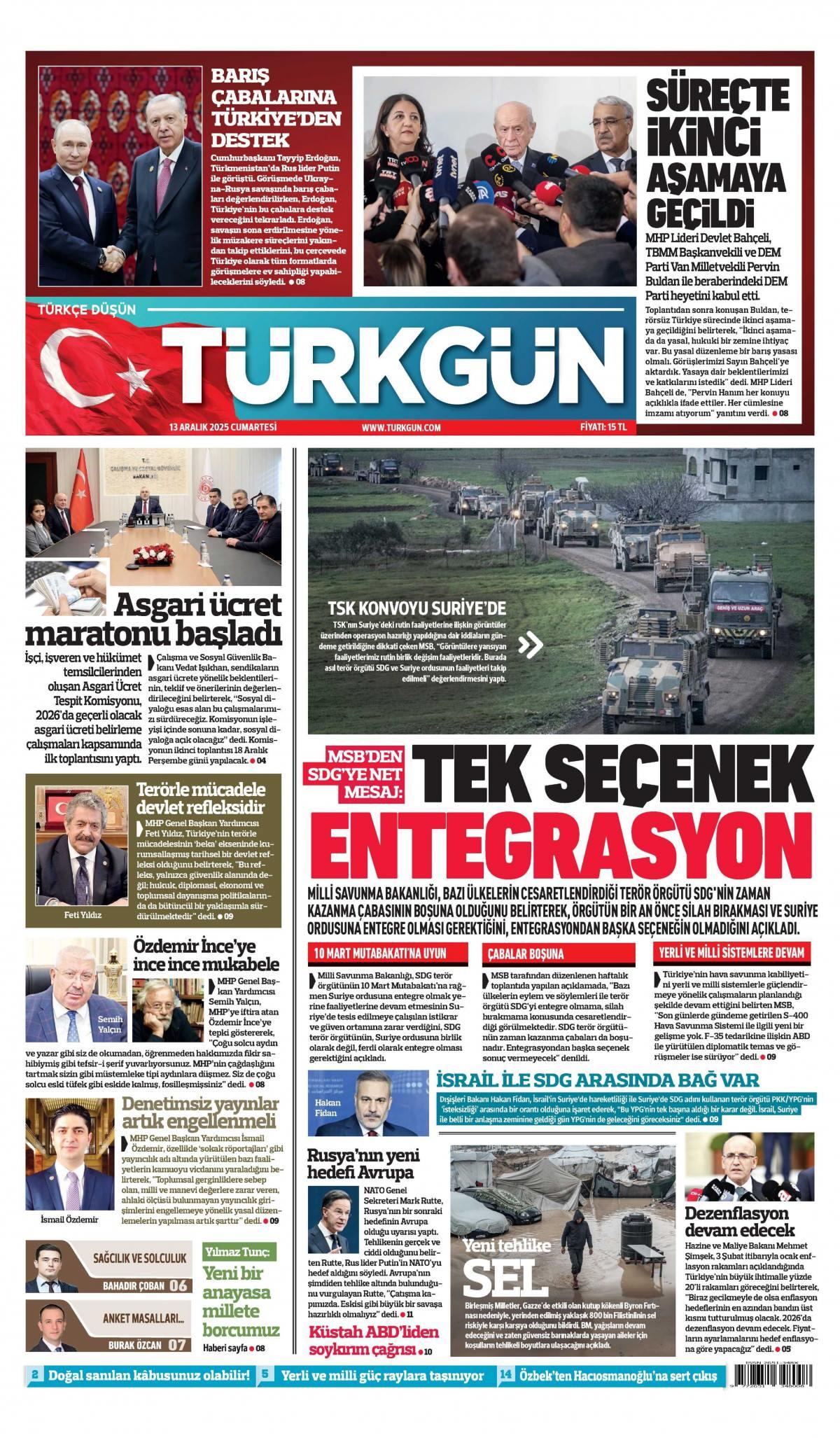 Türkgün Gazetesi 14 Aralık 2025 Günü Manşeti