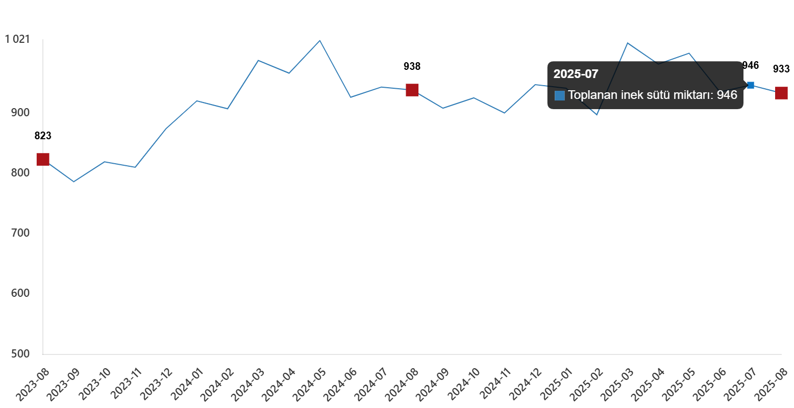 Toplanan inek sütü miktarı, Ağustos 2025